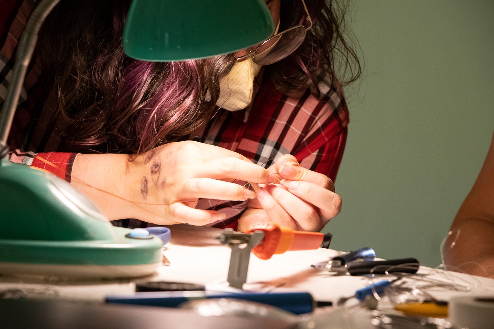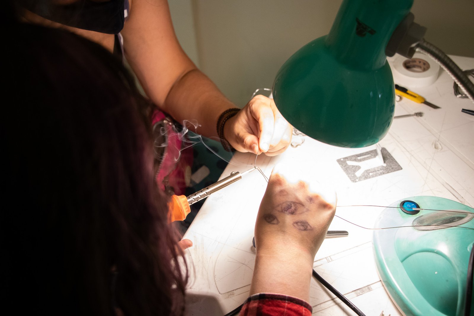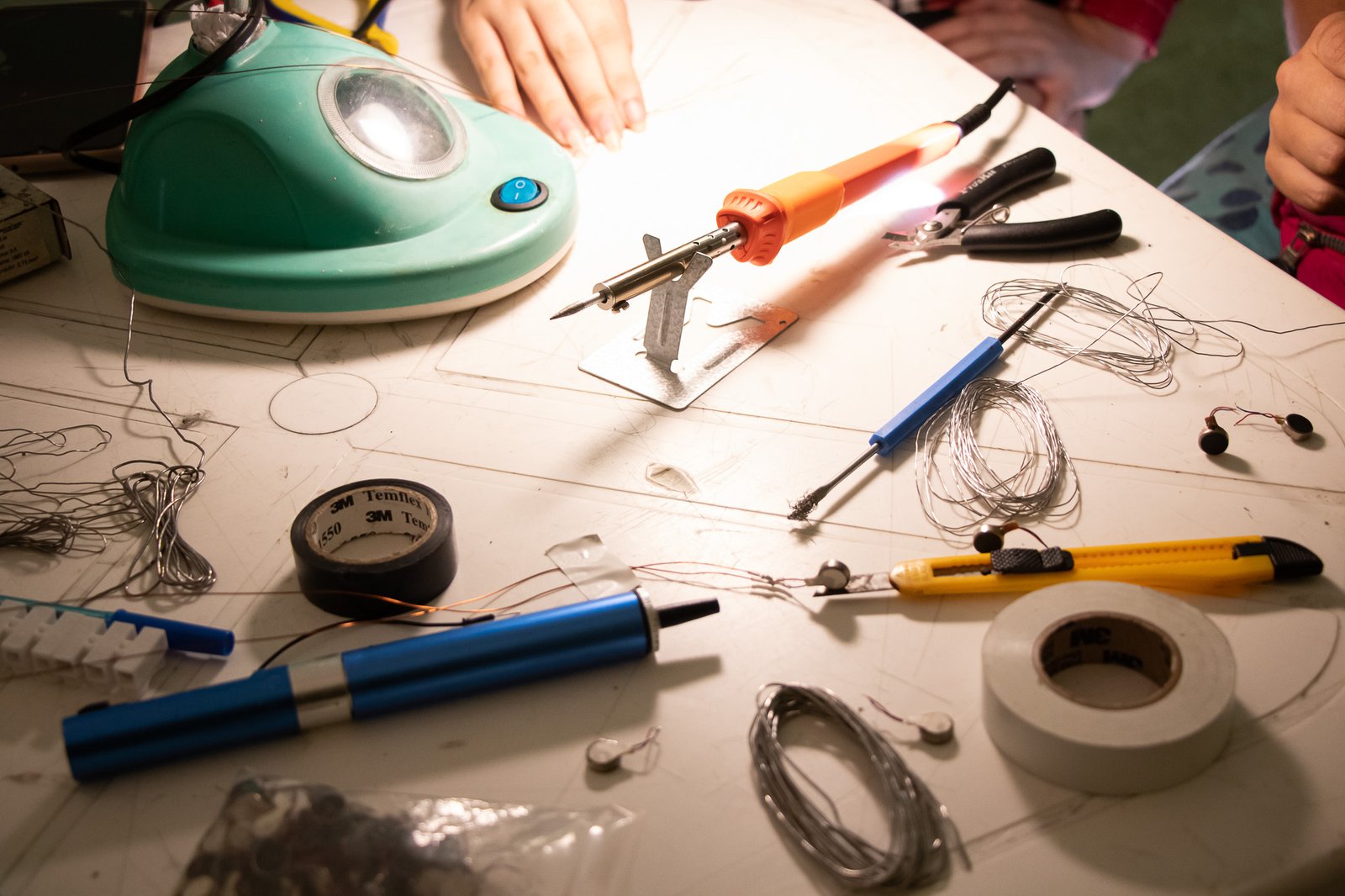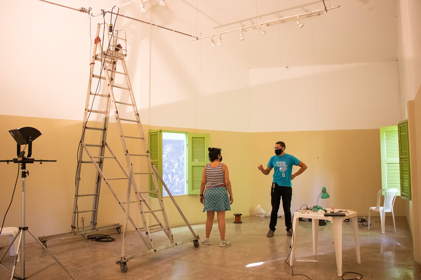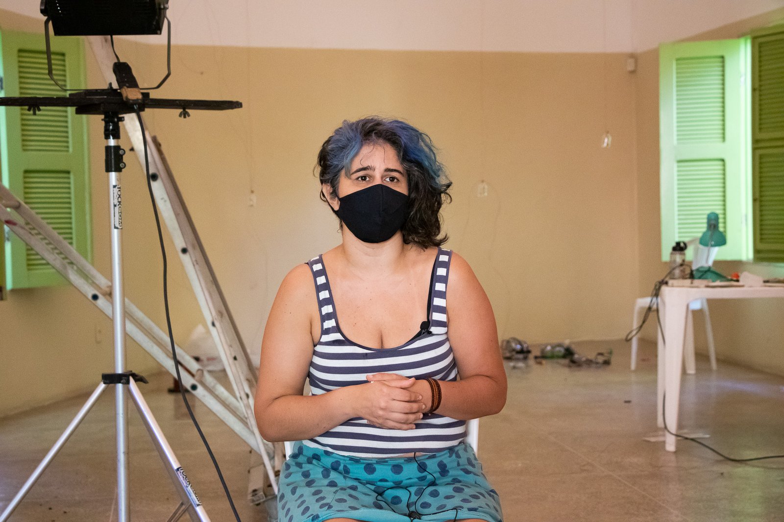 Nessa instalação, o próprio processo de construção é lugar de outras lutas: disputar e questionar o sentido do uso da automatização tecnológica; disputar a existência de mulheres no âmbito da tecnologia; acessibilizar idéias/ferramentas em conversas e outras ações formativas; atuar no fortalecimento dos processos da periferia… lutas contidas nesse gesto de distribuir uma multiplicidade de motores víbrios em vidros tilitintando no espaço.